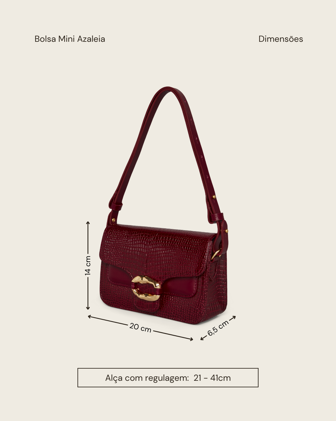 ✔ Compacta no tamanho, gigante no estilo: A Mini Azaleia é a versão reduzida da nossa bolsa Azaleia — com o mesmo charme elegante, agora em um formato ainda mais versátil. Seu acabamento em couro croco traz um ar sofisticado e contemporâneo.