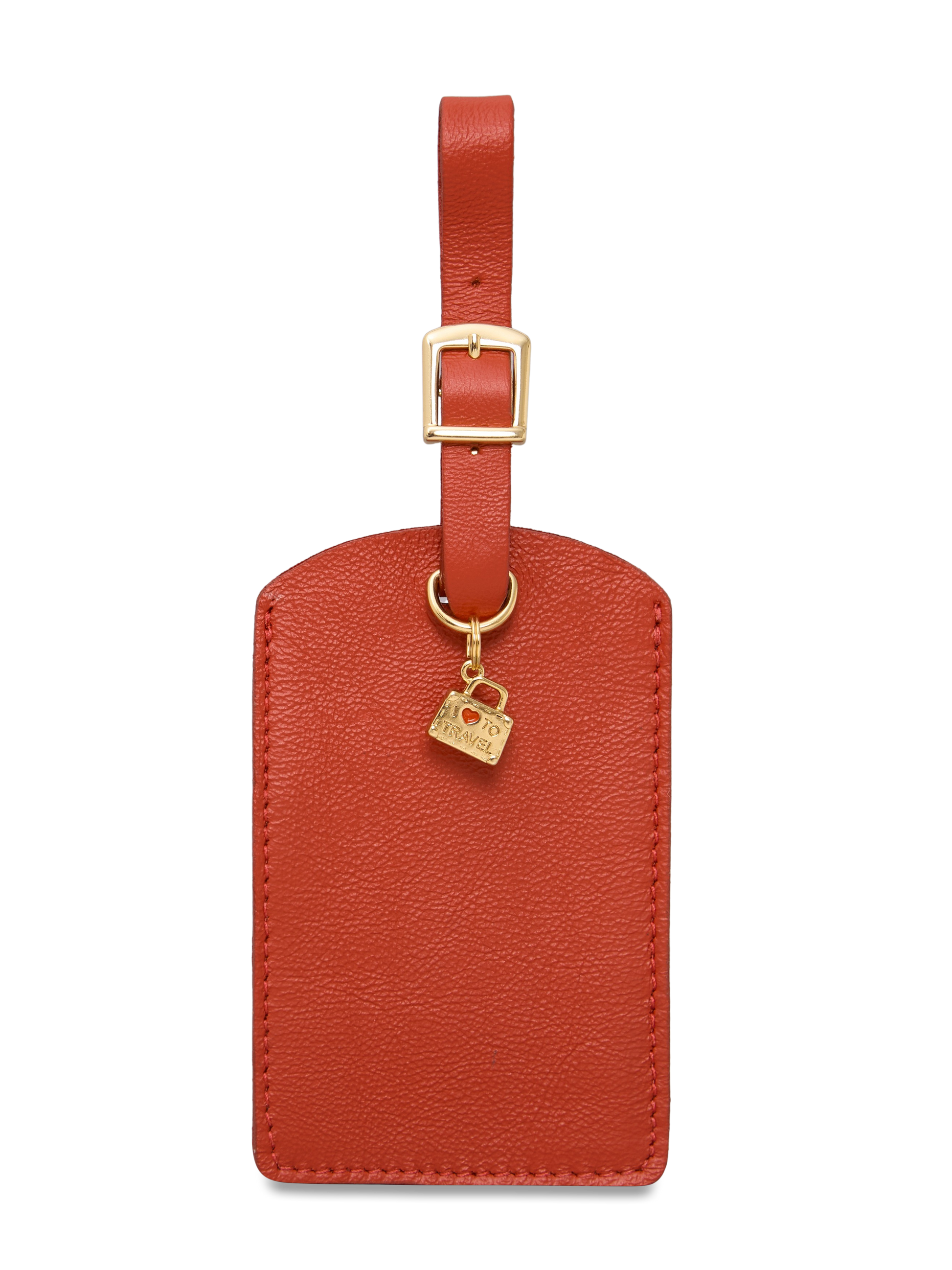 A tag possui um visor transparente, três opções de regulagem e fivela no banho ouro, que não oxida com o tempo, além de um lindo pingente "I love to travel".