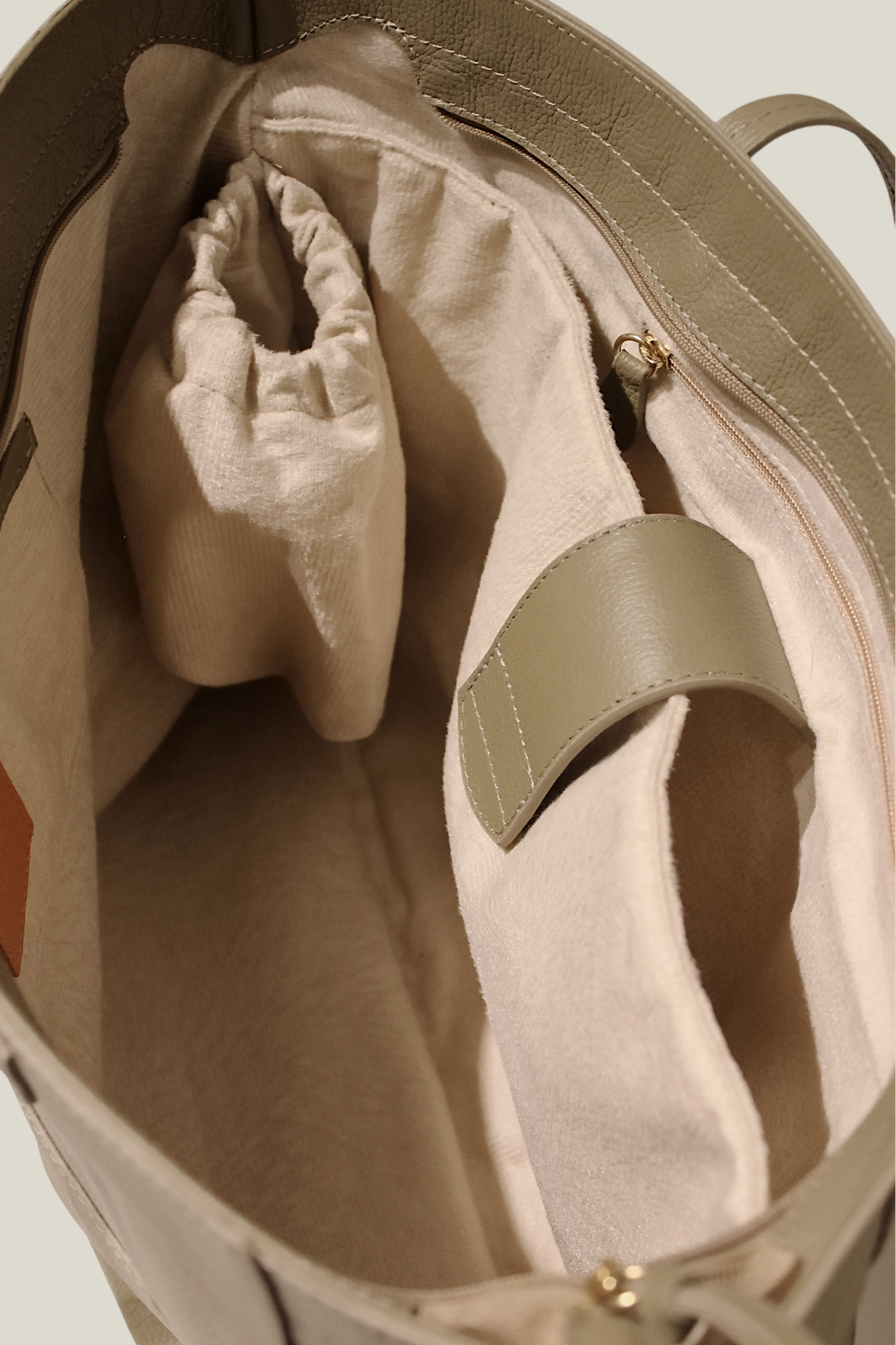 Dentro da caixa, além da sua nova bolsa, você recebe uma bag de algodão para armazenamento, nossa cartilha de cuidados com o couro e as informações de troca e devolução.