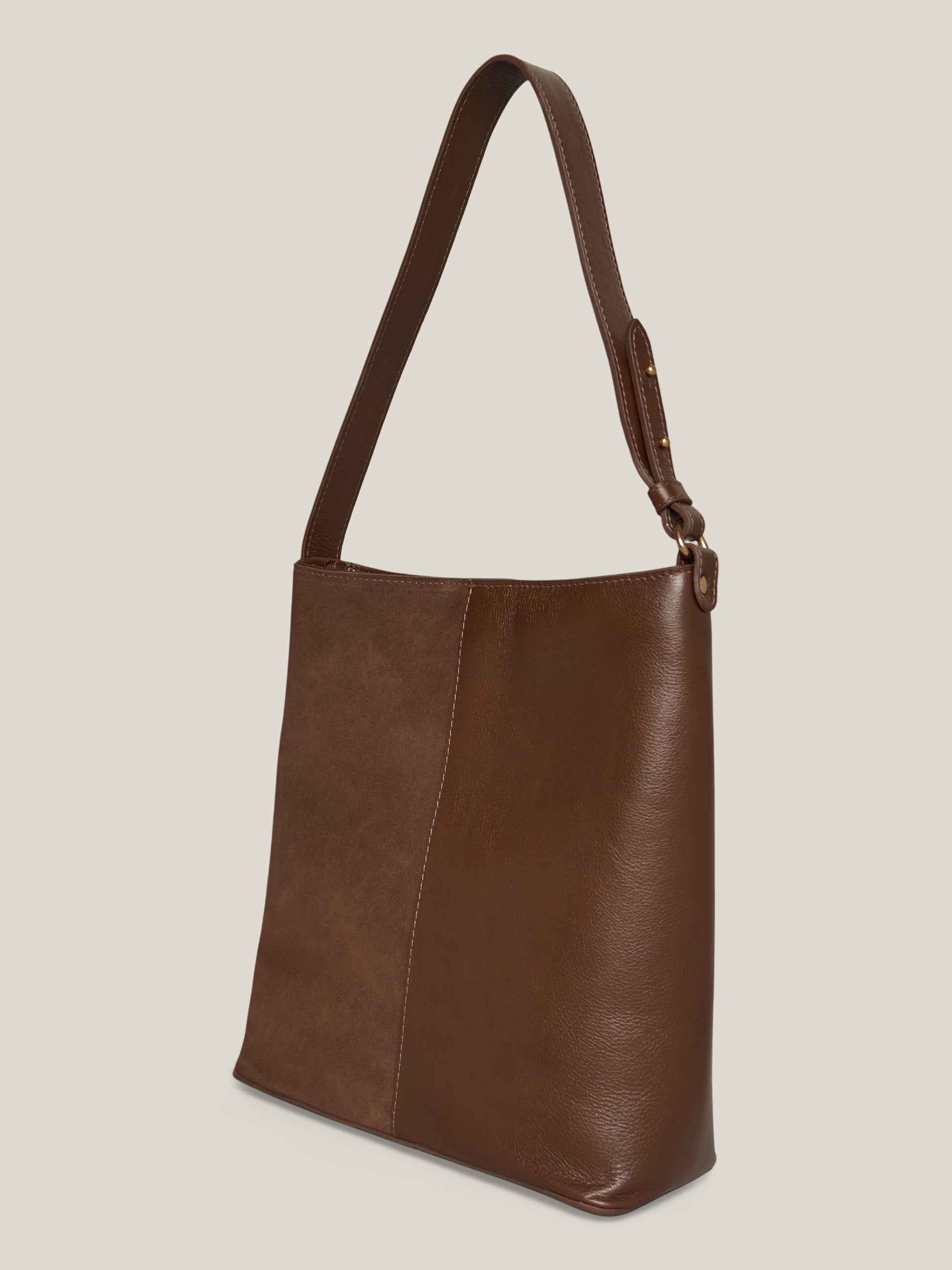 A Hera, metade em couro liso e metade em camurça, une textura e contraste em uma proposta casual, autêntica e versátil para um dia a dia com mais estilo.