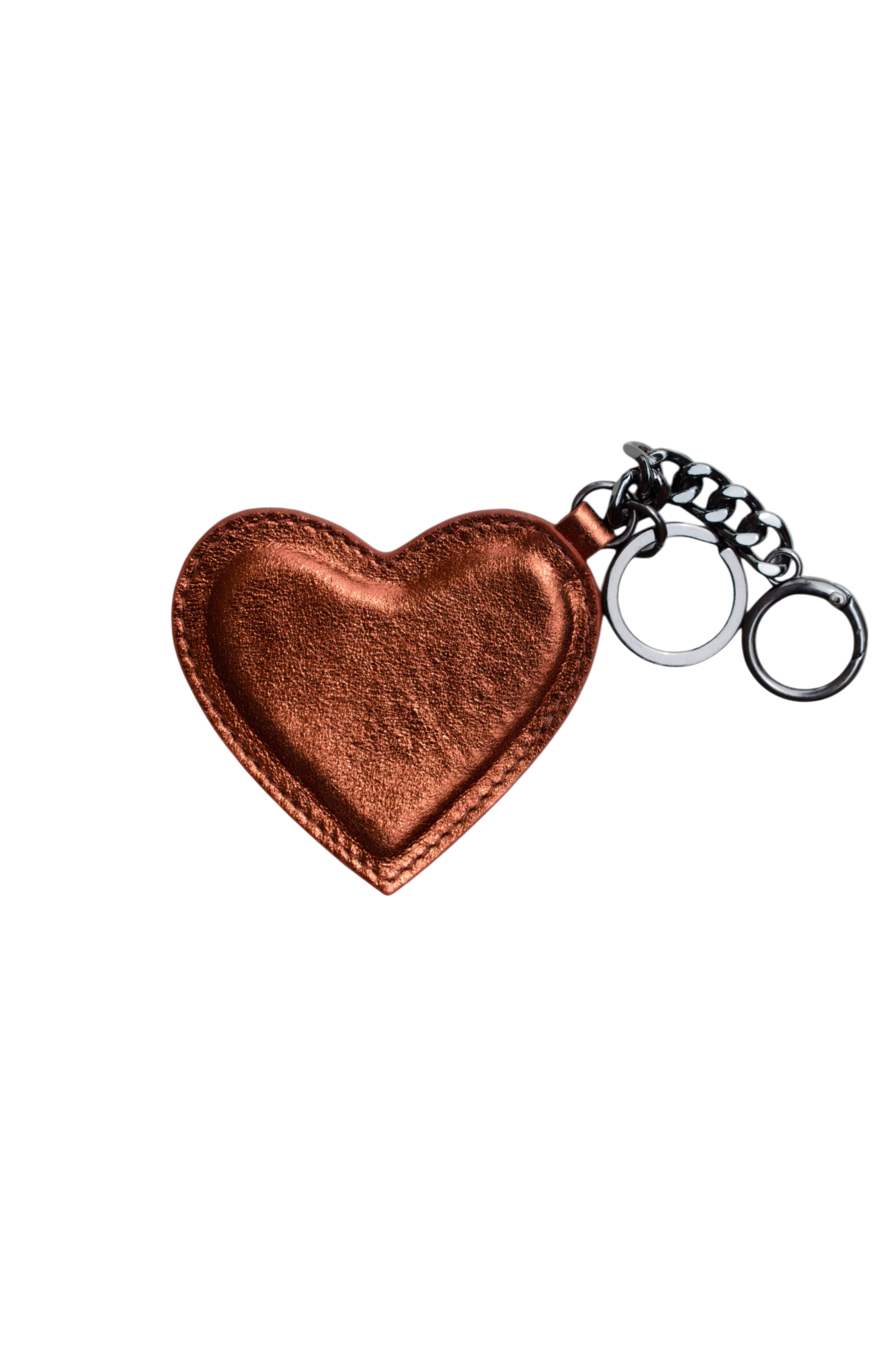 O Coração é a escolha perfeita para personalizar sua bolsa. Possui uma argola para pendurar as chaves e um mosquetão circular para conectar o chaveiro em qualquer bolsa. Aviamentos no banho ônix, que não oxida com o tempo.