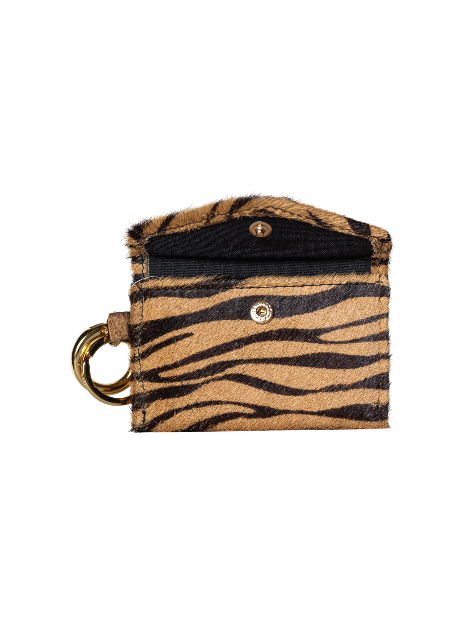 - Design funcional: formato envelope compacto com fecho de botão, ideal para manter cartões seguros e sempre à mão, possui argola para pendurar as chaves.