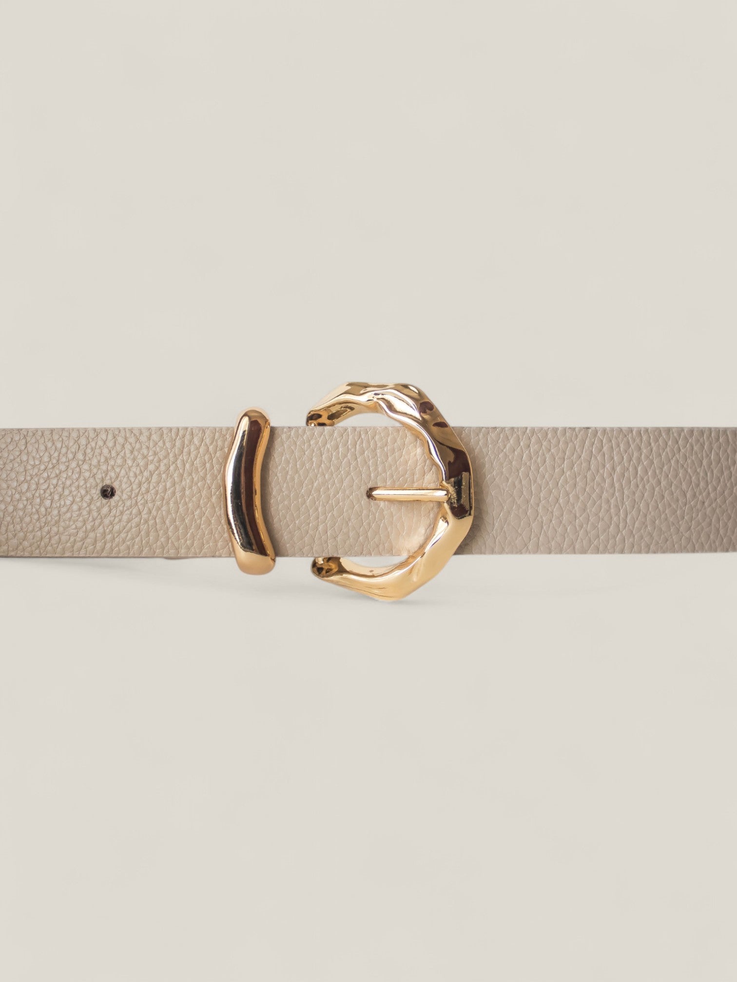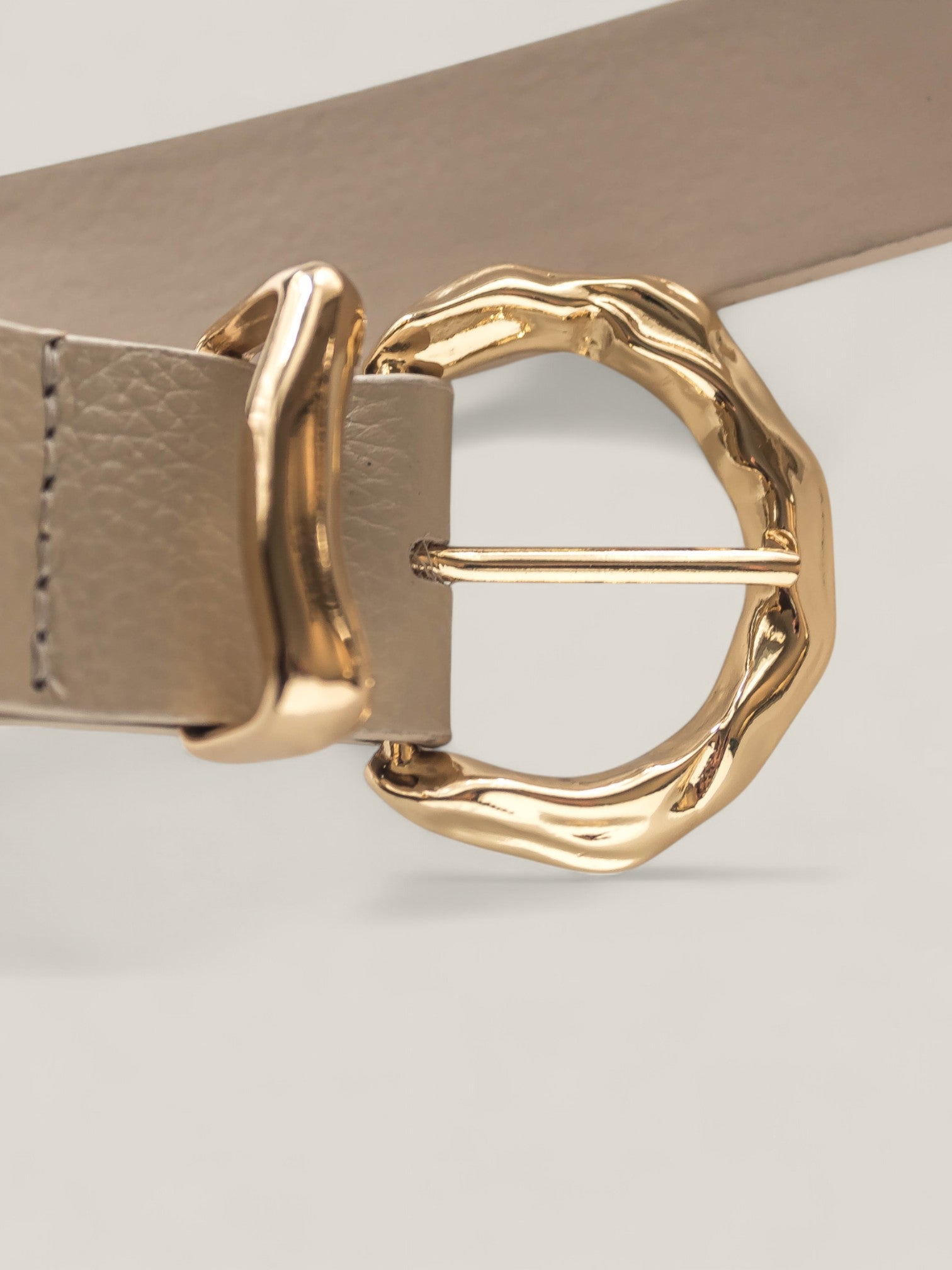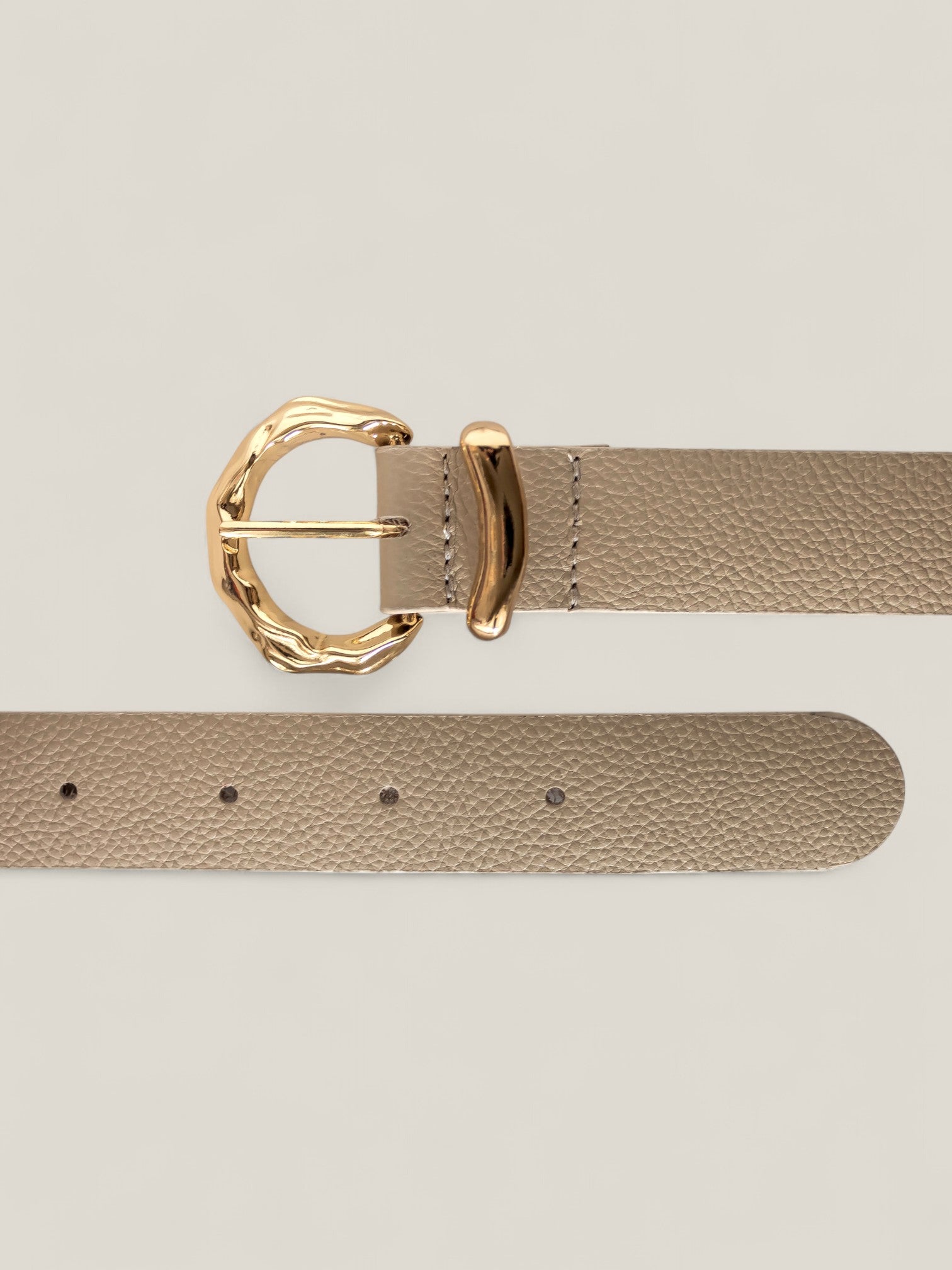 - Design versátil e atemporal: A fivela metálica com formato orgânico no banho ouro martelado adiciona um toque de sofisticação discreta que combina com diferentes estilos e ocasiões.